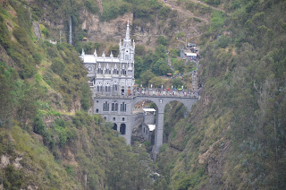 De ahí se llega a La Virgen de Las Lajas, un lugar en el que una piedra mostró alguna vez una imágen de la virgen maría y donde luego se erigió esta increíble iglesia sobre el río, encastrada en las montañas.